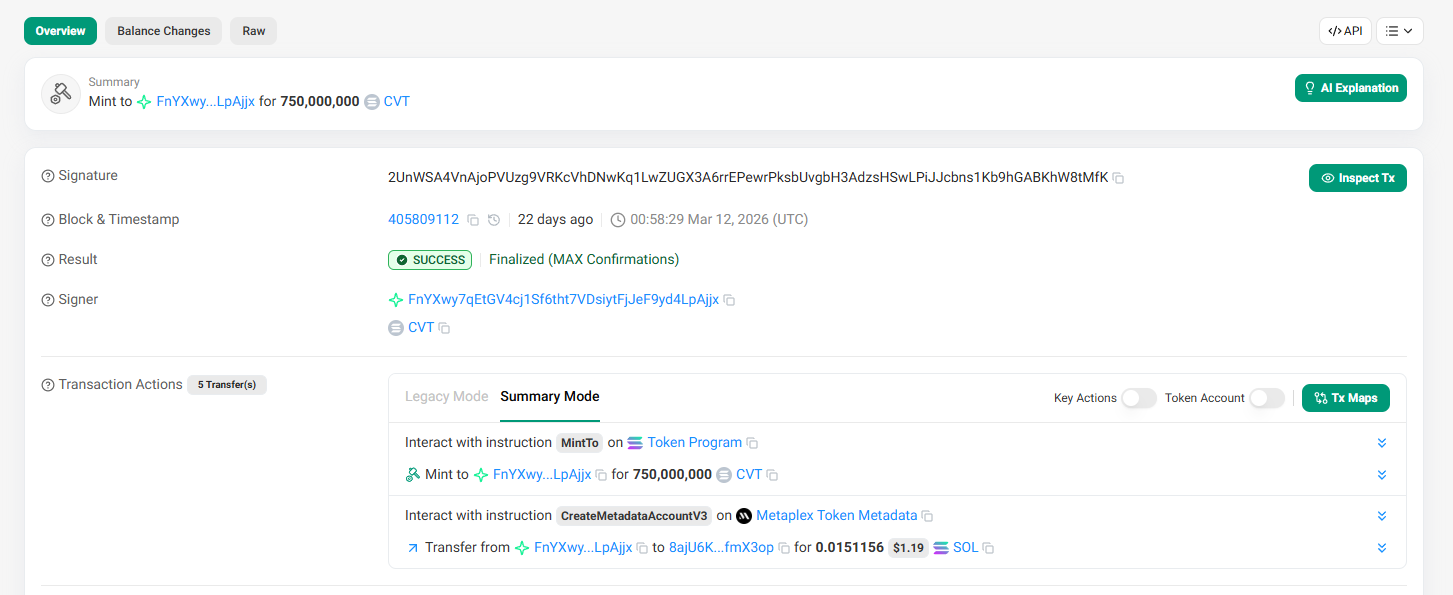 เมื่อวันที่ 11 มีนาคม 2026 แฮ็กเกอร์สร้างโทเค็นปลอมชื่อ CarbonVote Token (CVT) จำนวน 750 ล้านเหรียญ จากนั้นทำการสร้าง Liquidity Pool ขึ้นบน Raydium โดยใช้เงินจำนวน 500 ดอลลาร์ ทำให้ราคาของ CVT นั้นอยู่ที่ประมาณเหรียญละ 1 ดอลลาร์ และได้สร้างประวัติราคาของเหรียญผ่านการ Wash Trading