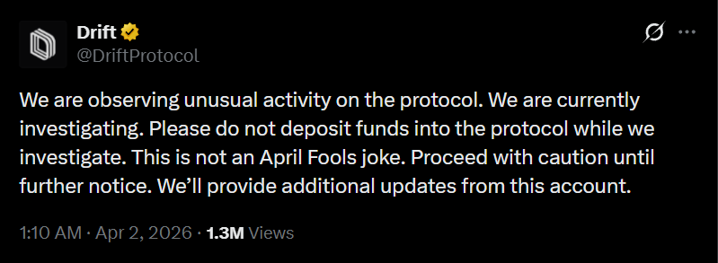 วันที่ 1 เมษายน 2026 ตามเวลาท้องถิ่น Drift Protocol แพลตฟอร์ม Perps DEX ที่ใหญ่ที่สุดบน Solana ถูกโจมตี Spot Market Vaults จนเสียหายกว่า 280 ล้านดอลลาร์ นับเป็นเหตุการณ์แฮ็ก DeFi ที่รุนแรงที่สุดในปี 2026 และใหญ่เป็นอันดับสองในประวัติศาสตร์ของเครือข่าย Solana รองจาก Wormhole Bridge เมื่อปี 2022