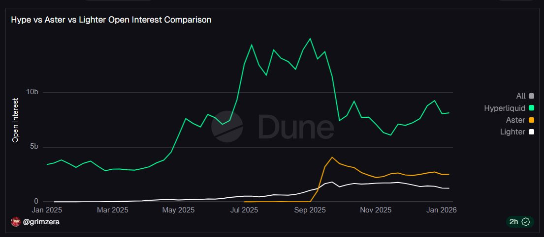 โดยคงความเป็นอันดับหนึ่งในกลุ่ม PerpDEX และทิ้งห่างคู่แข่งหลายเท่าตัว สูงกว่าอันดับสองอย่าง Aster ถึง 3 เท่า