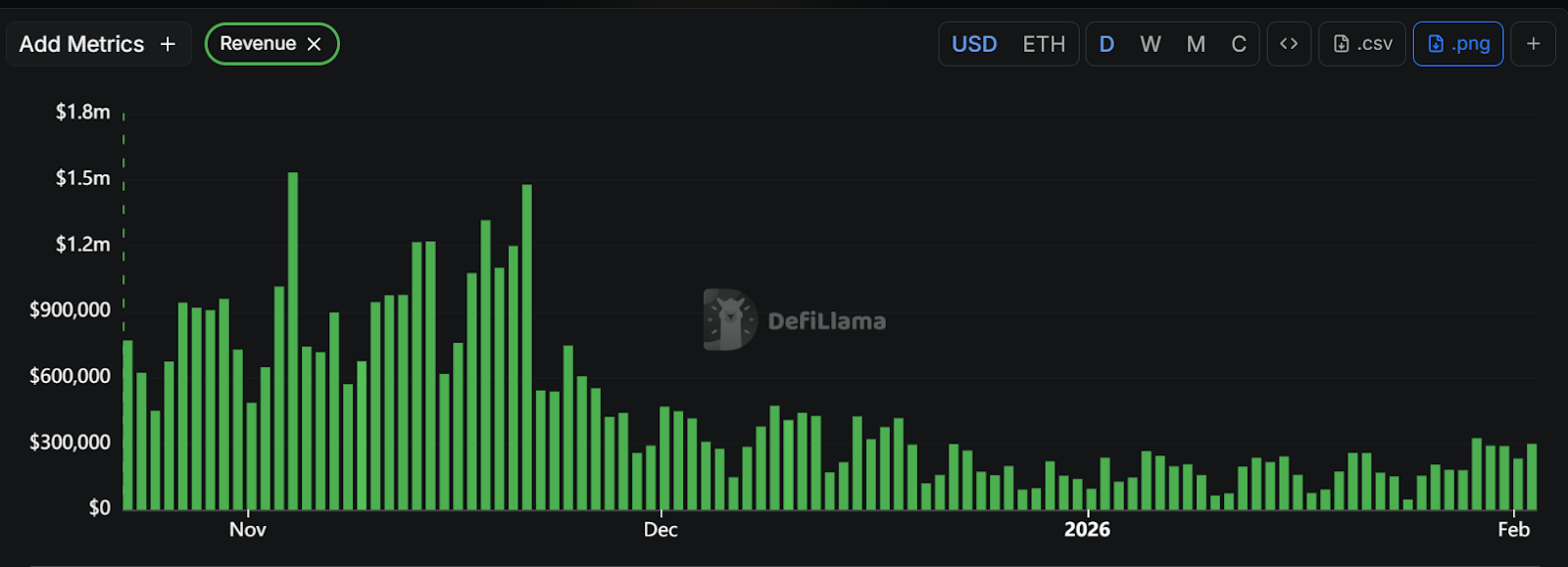 However, immediately following the TGE on December 30, 2025, revenue saw a significant decline. By February 2, 2026, daily revenue plummeted to just $290,000. In stark contrast, Hyperliquid recorded revenue of $2.95 million on that same day. This represents a massive drop compared to Lighter's peak, whereas Hyperliquid has demonstrated far more consistent revenue retention.