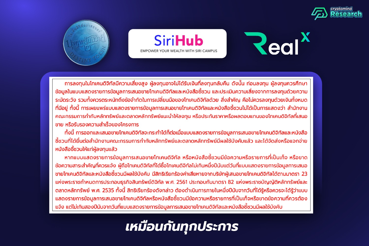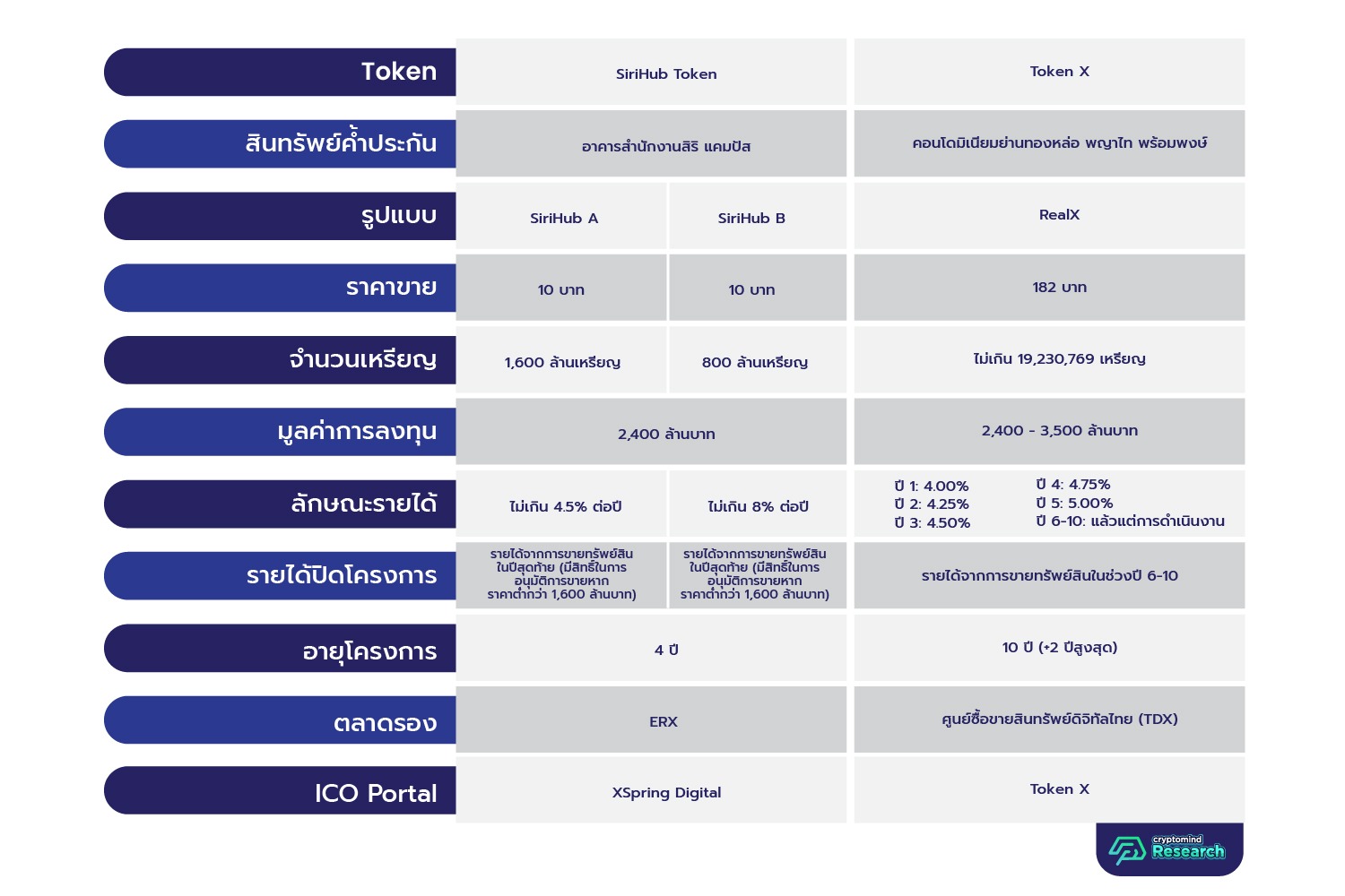 โดยภาพรวมแล้ว แม้ว่าจะเป็น Real estate-backed Token เหมือนกัน แต่สิ่งที่แตกต่างอย่างชัดเจนระหว่าง SiriHub Token และ RealX Token สรุปออกมาได้ 3 อย่าง ดังนี้