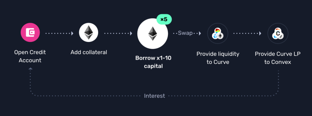 Gearbox แก้ปัญหานี้โดยสร้าง Credit account ขึ้นมาซึ่งเป็น wallet ที่สามารถใช้บน Platform นี้เท่านั้นไม่สามารถถอนหรือโอนออกไปได้ และนักลงทุนจะสามารถใช้สินทรัพย์ใน account นี้กับแค่ Dapps ที่ปลอดภัยและได้การรับรองจากทั้งคนหมู่มากและ Gearbox เท่านั้น นอกจากนั้นยังสามารถนำสินทรัพย์ไปลงทุนใน Strategy ต่างๆที่ Platform ออกแบบมาได้อีกด้วย